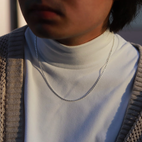 【ブラックコーデに映える燻し加工】F.H. シルバーネックレス(ロープチェーン 2.5mm):#N038-55cm