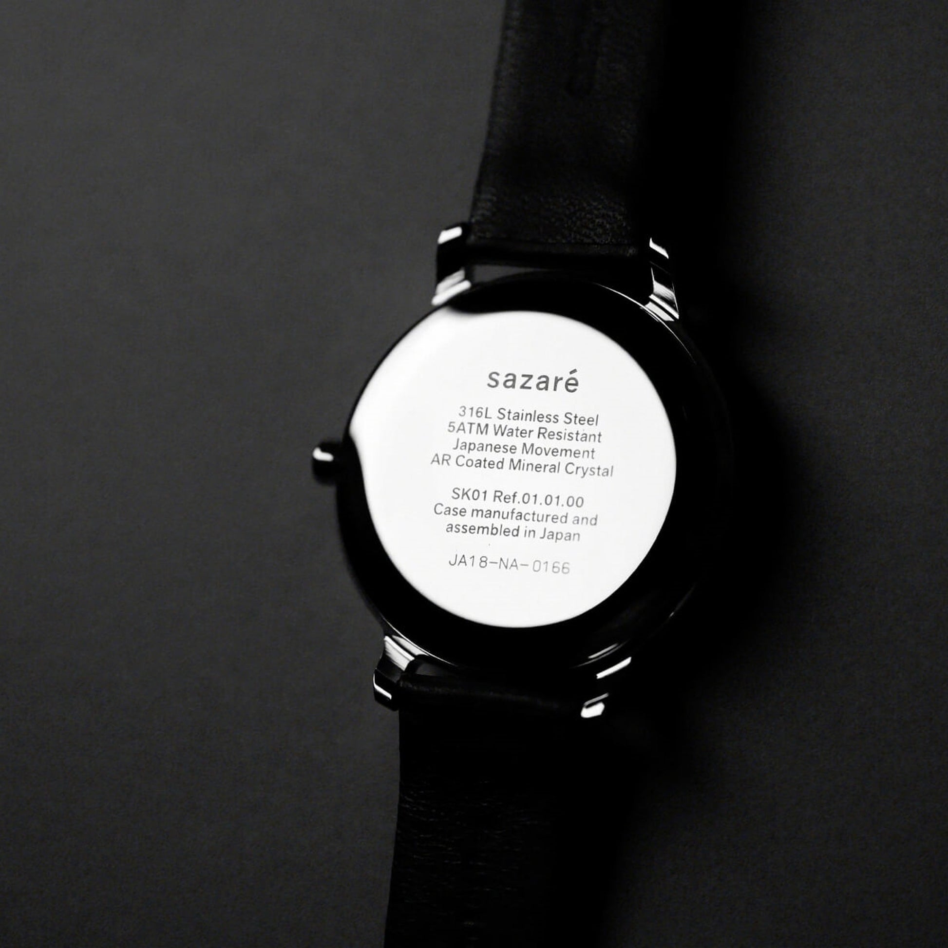 【一目惚れで自身も購入、Made in Japanの腕時計】【正規取扱店】sazare : SK01 / SS SILVER MIRROR FINISH / WHITE DIAL / BLACK SHEEPSKIN LETHER