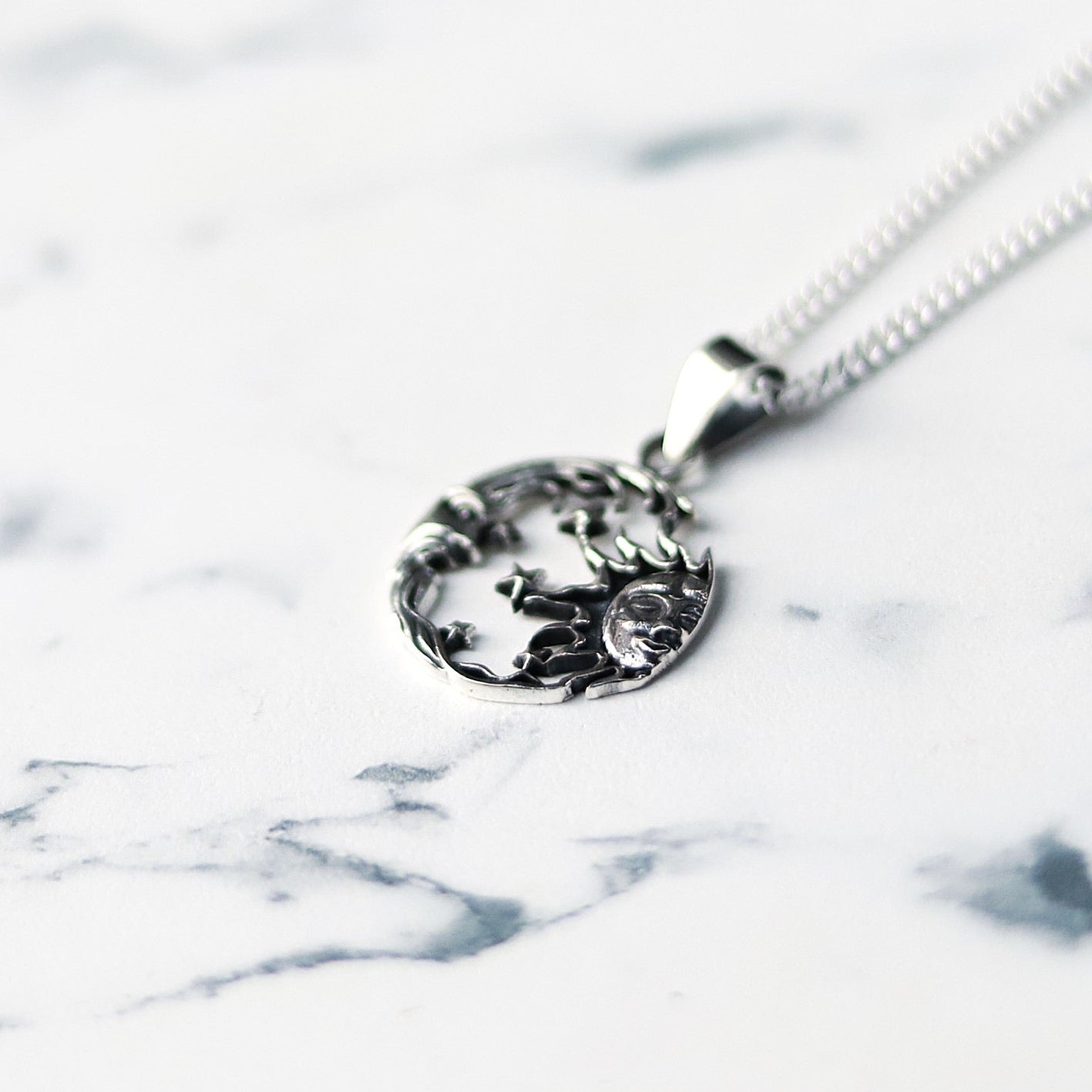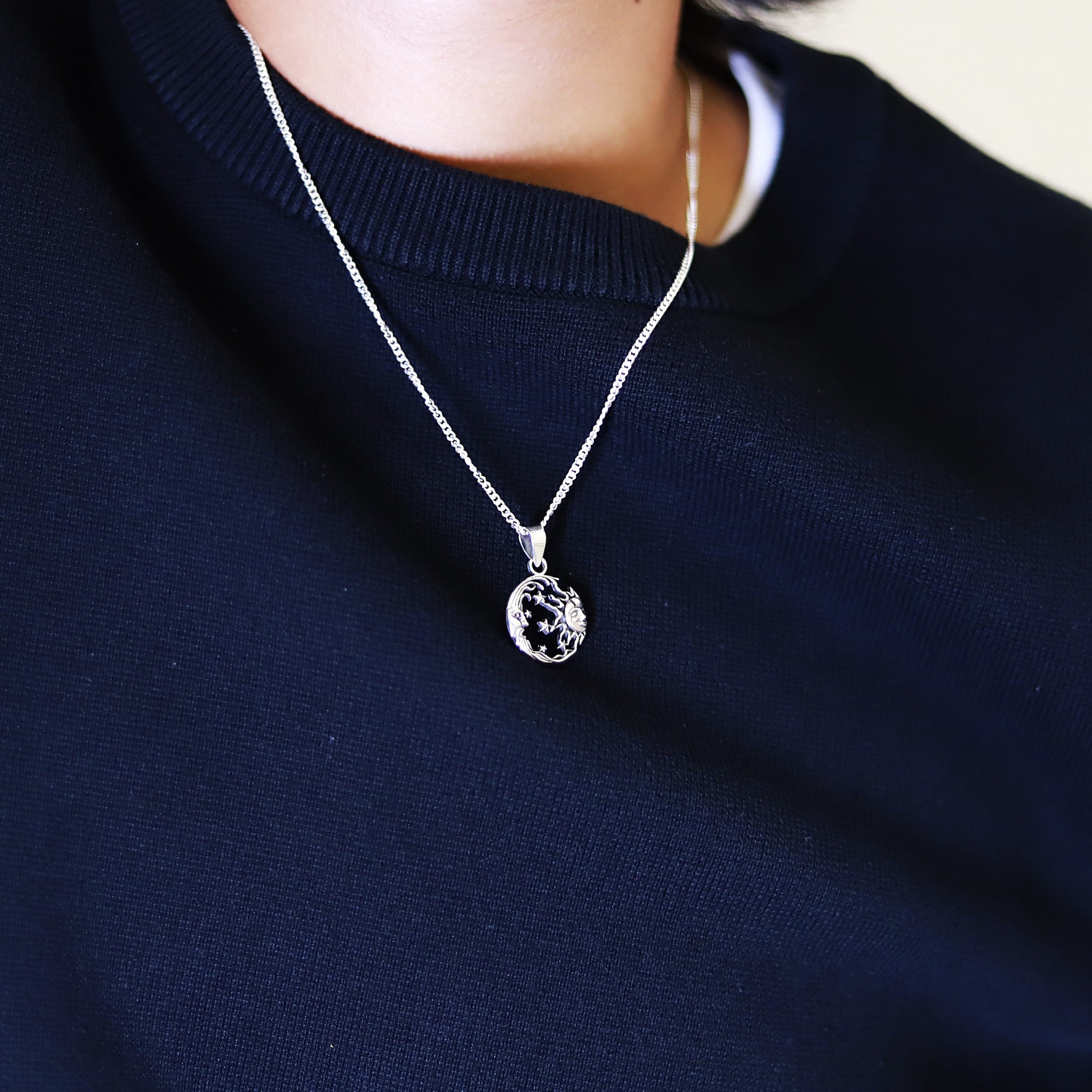 ■月、太陽、星が立体的にデザインされている ポジティブでエネルギッシュなペンダント。