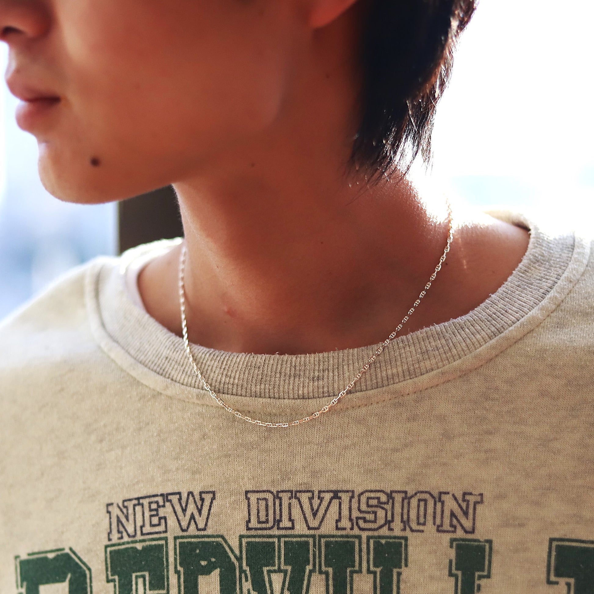 ■古着に合わせたいラフな着こなしのスパイスに。重ね付けにも重宝する長さ45cm。これぐらいさりげないチェーンは毎日つけても飽きがこない。