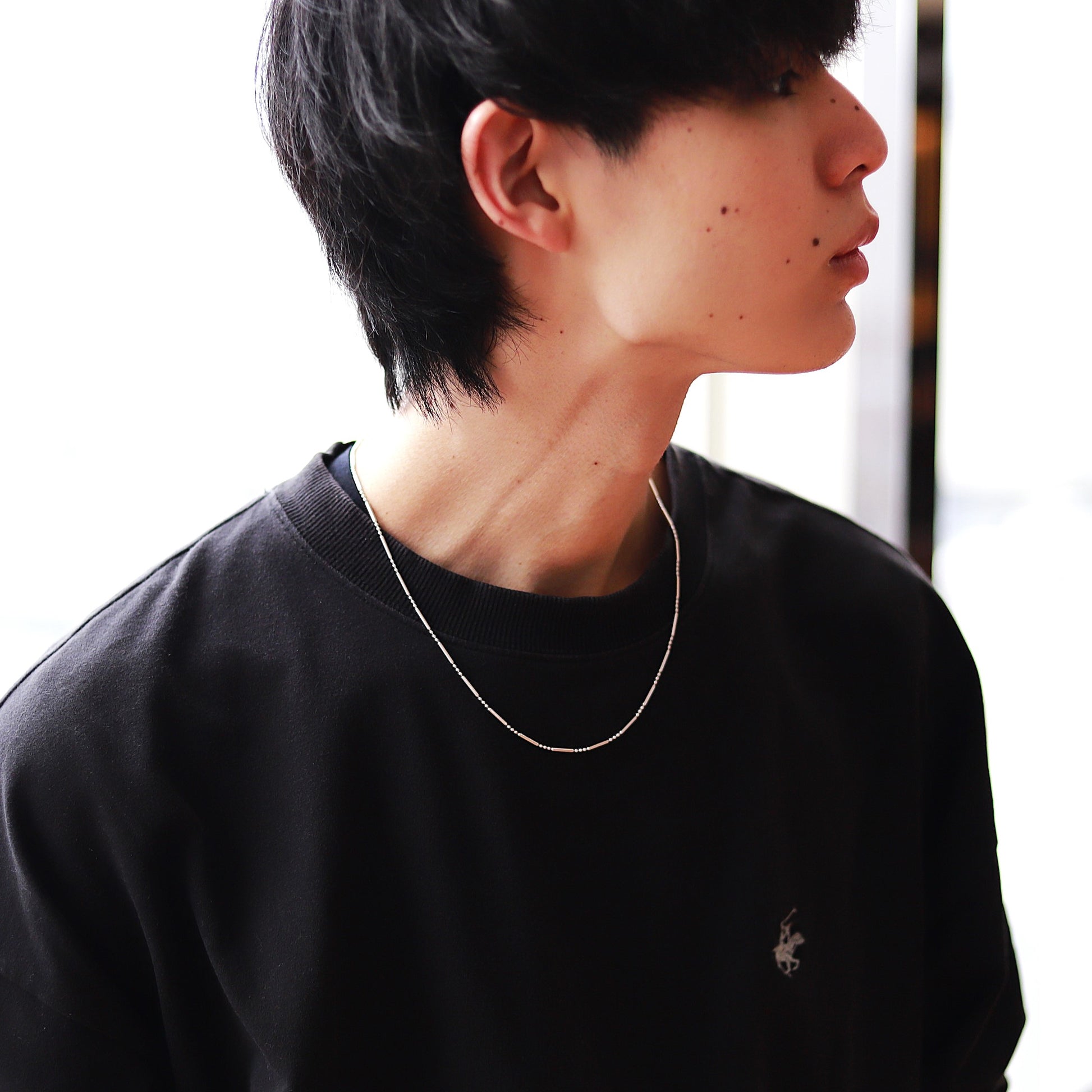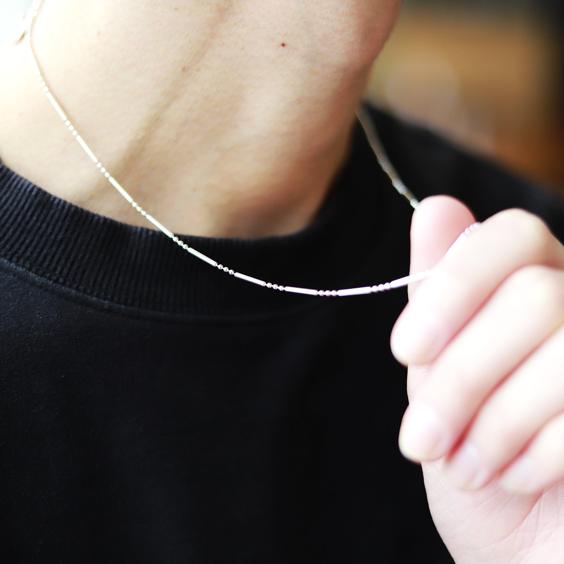 ■ 1.5mm幅の華奢な細長いチューブリンクが光を集め首元を軽やかにし普段のコーデをさりげなくおしゃれに