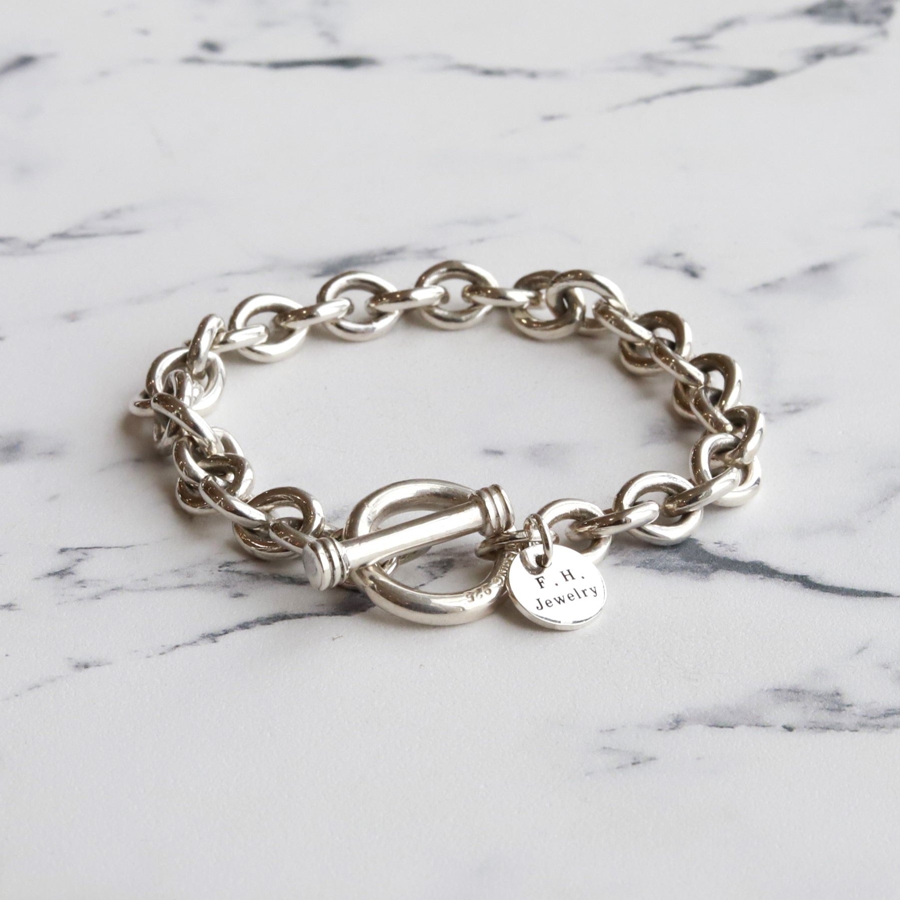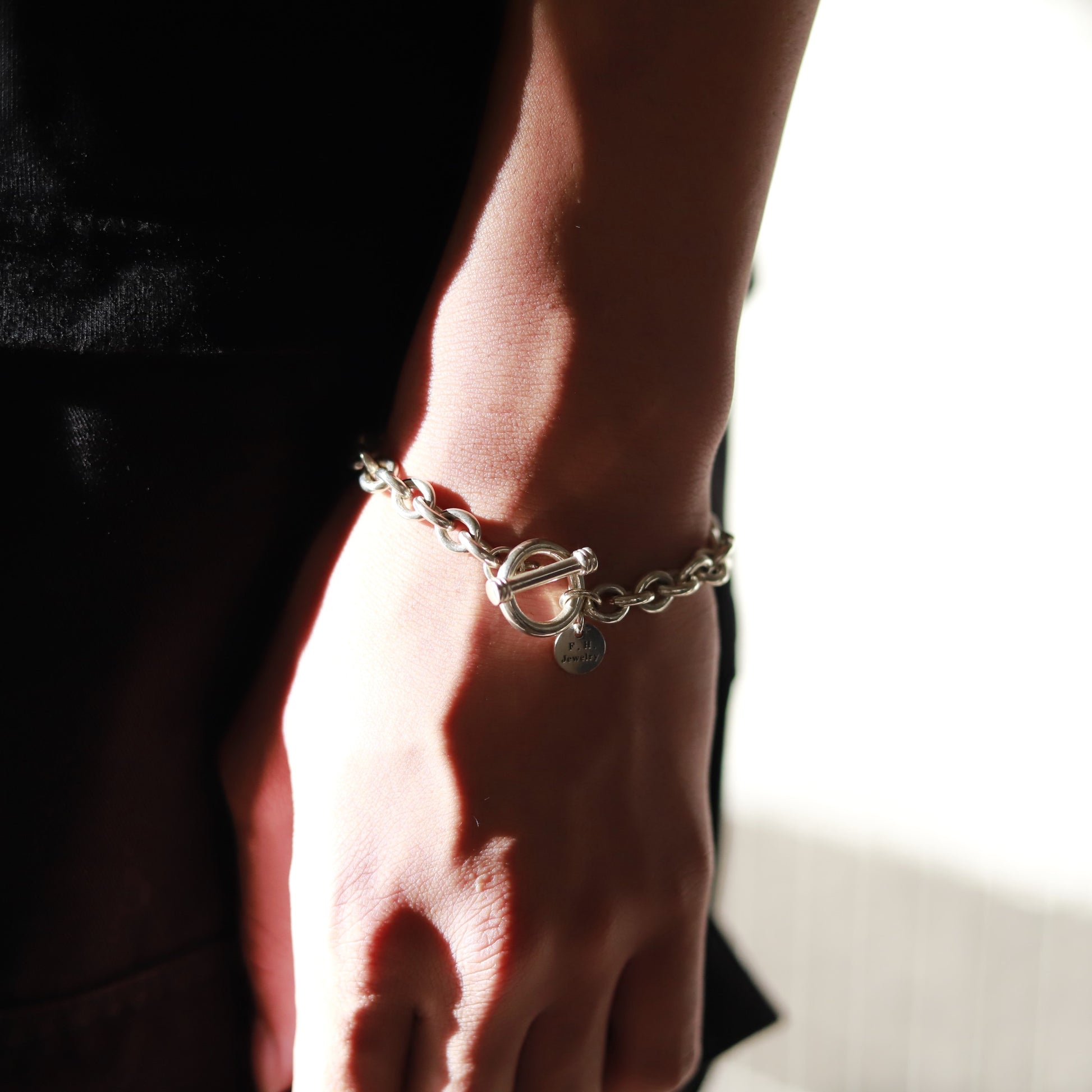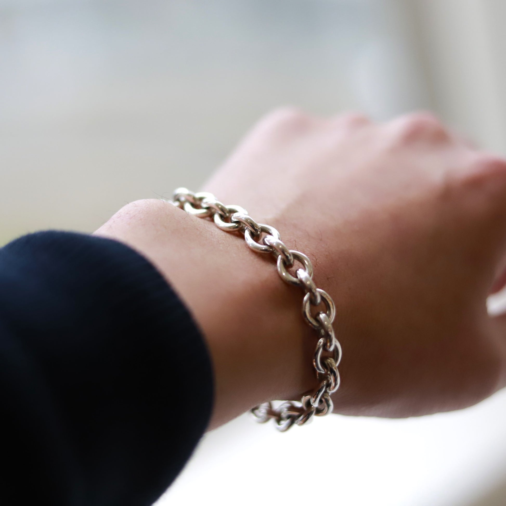 【使うほどに深まる風合い】F.H. シルバーブレスレット(サークルリンクチェーン 7mm):#B012-19cm