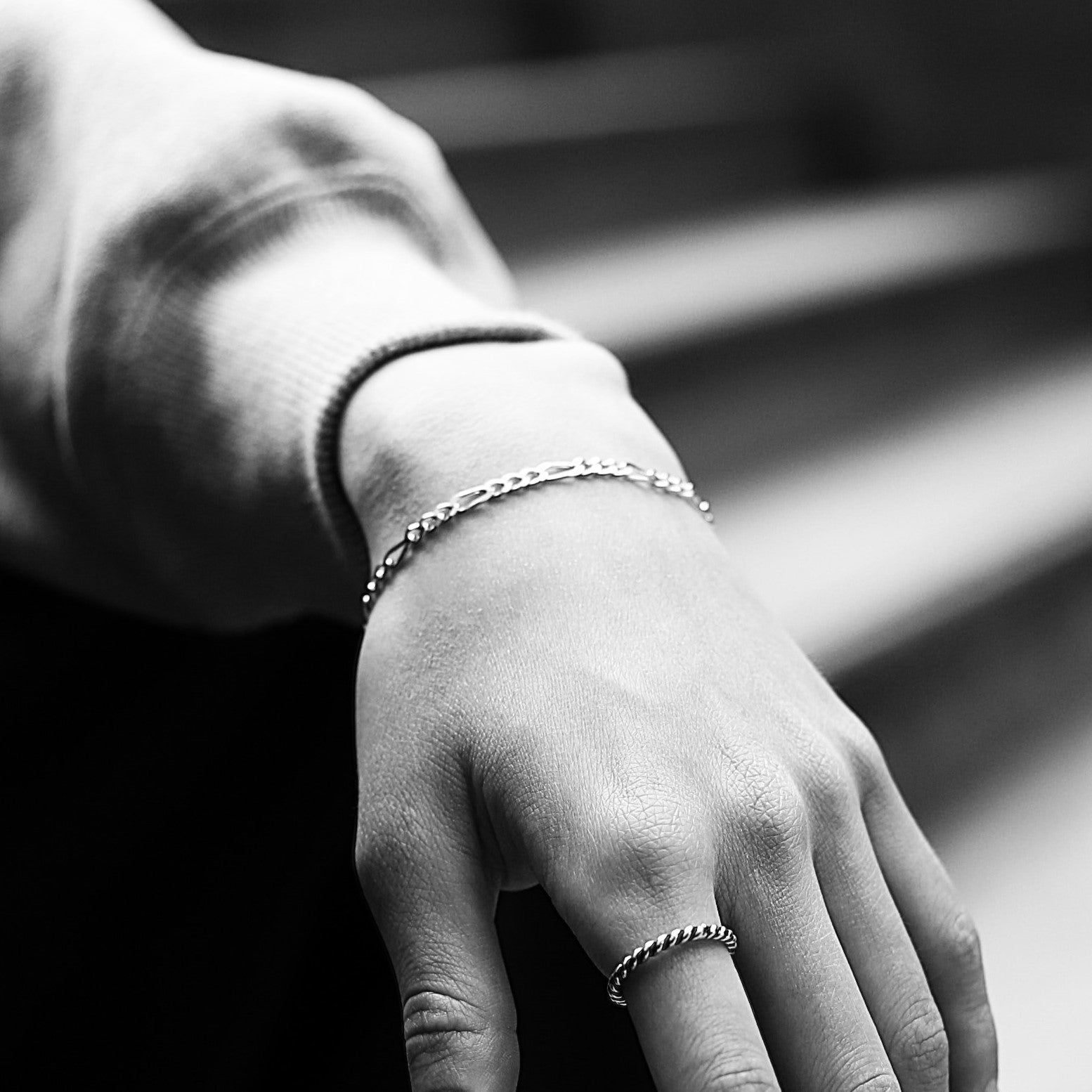 【彼の手元を上品に】F.H. シルバーブレスレット(フィガロチェーン4mm):#B027-19cm