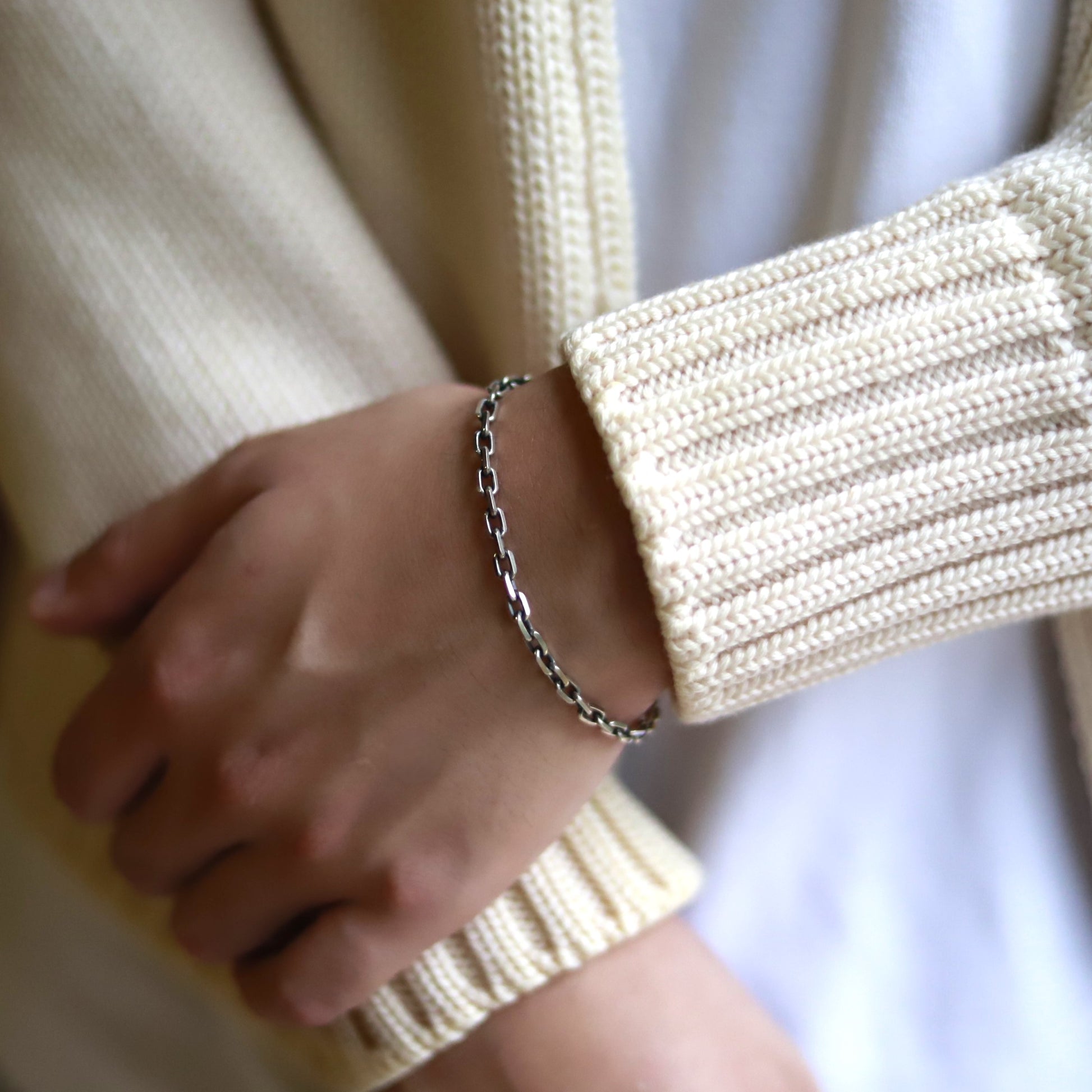 ■ 小ぶりな楕円のリングを連ねたブレスレット。