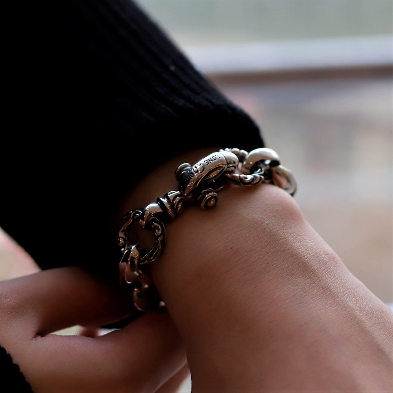 ■ロンワンズが誇るNo.1ブレスレットです。艶のある鏡面仕上げとデザイン、重量感などすべてのポイントにおいて最高のバランスで作られています。当初これに目をつけた各界の著名人が着け始めたことをきっかけに一気にその名が世界に広まりました。
