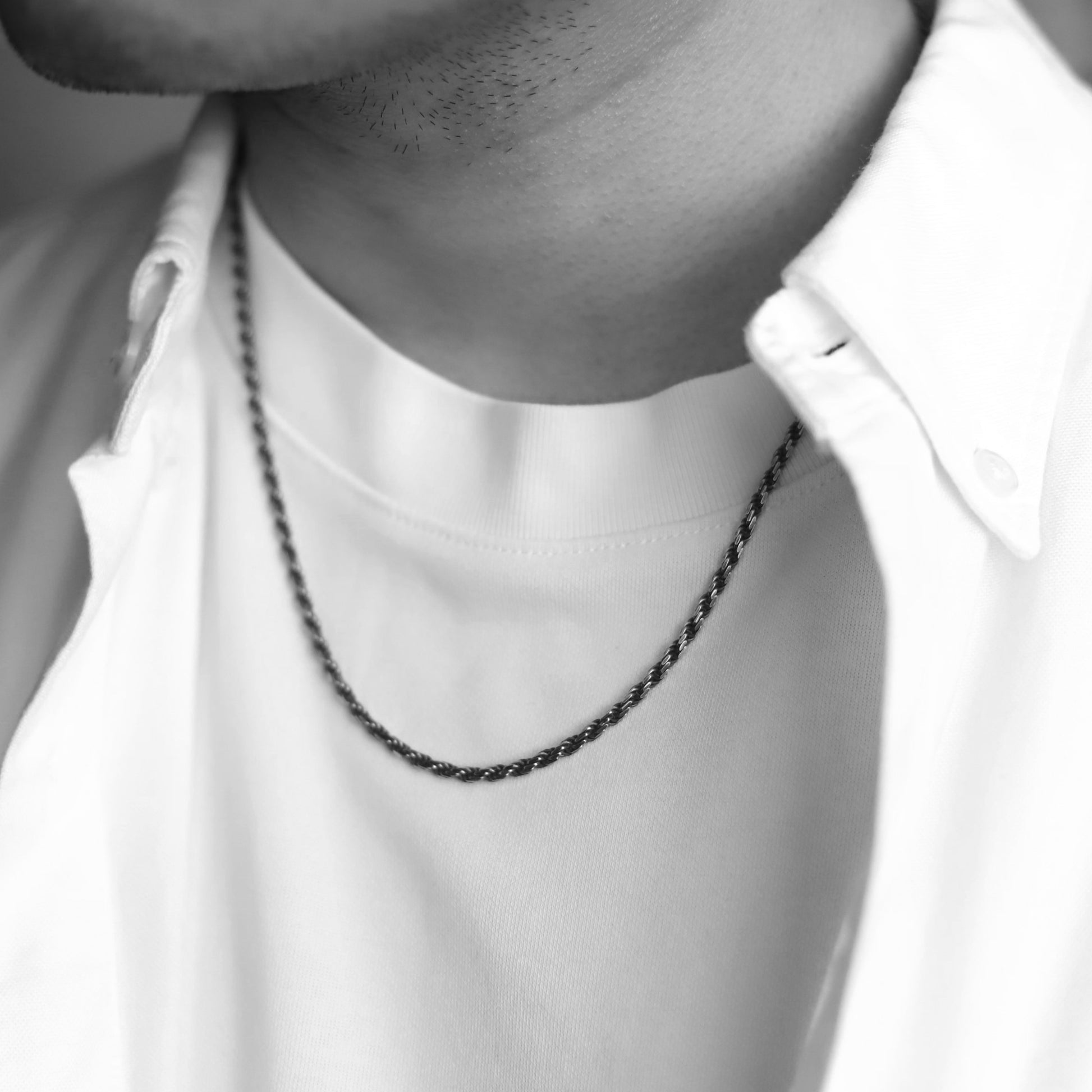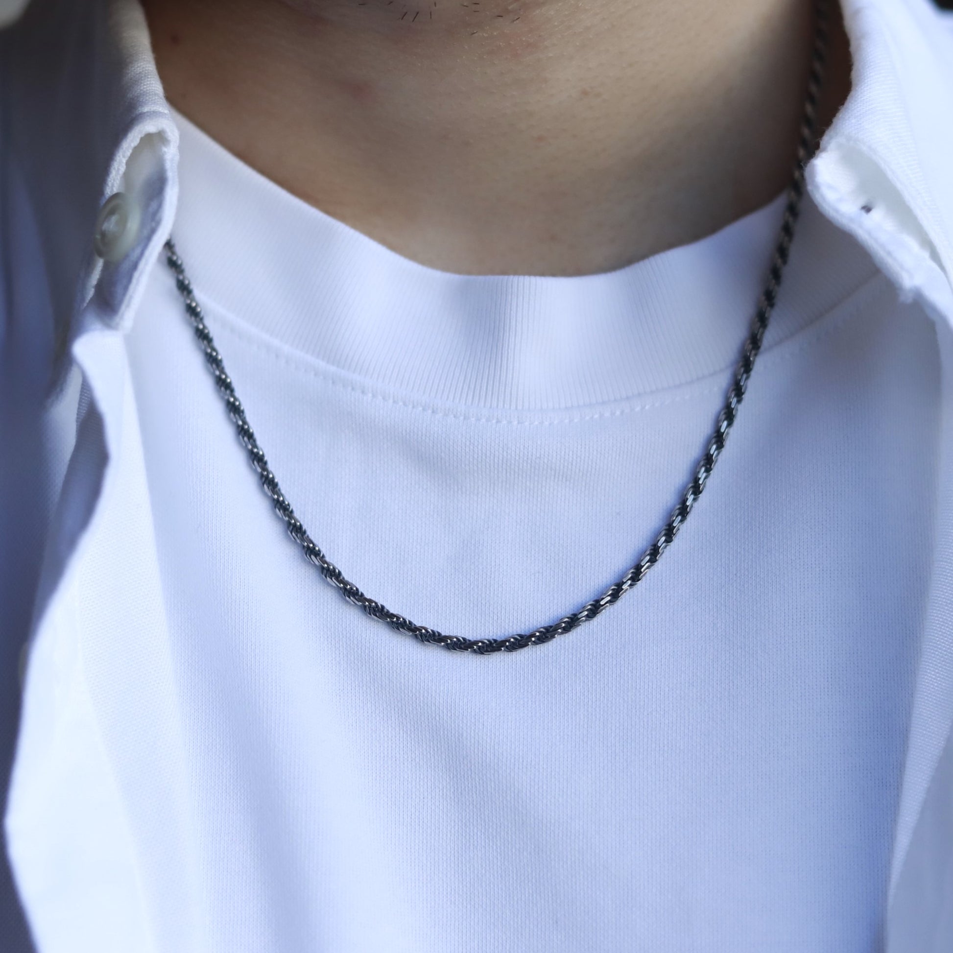 ■ あえてぎらつかない燻し加工のロープチェーンネックレスは お手入れもほぼ無しで、めんどくさがりな方でも使いやすいネックレス。