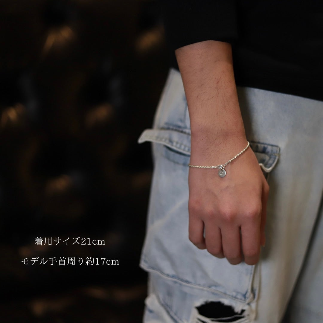 【手首回り大きい方に】F.H. シルバーブレスレット(ロープチェーン 1.8mm):#B038-21cm