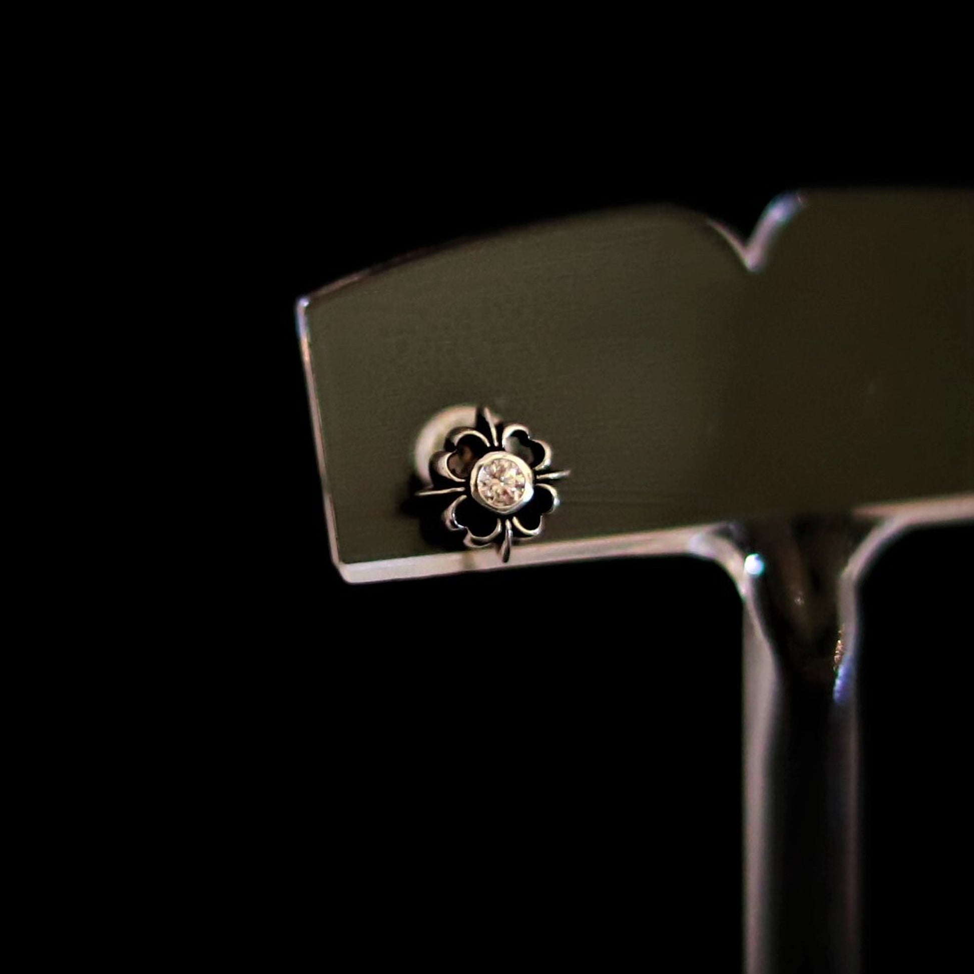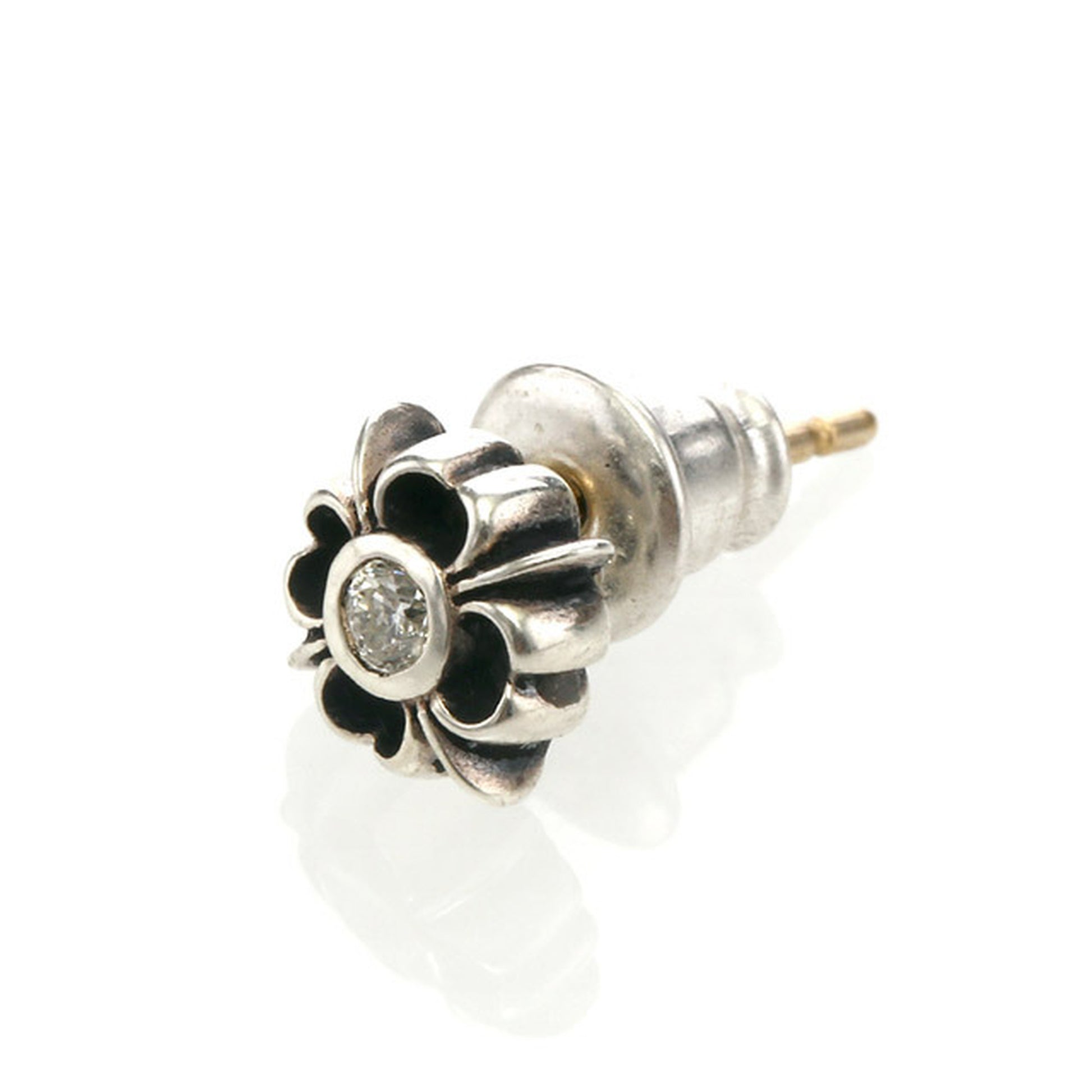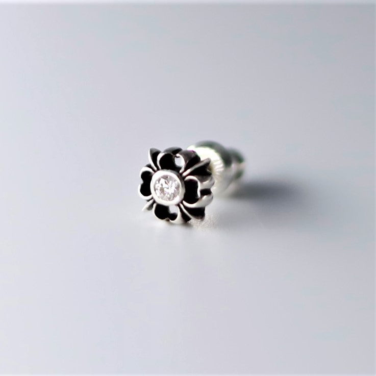 ■ 中央にダイヤモンドを一石セットした、スタッドタイプのクロスピアス。