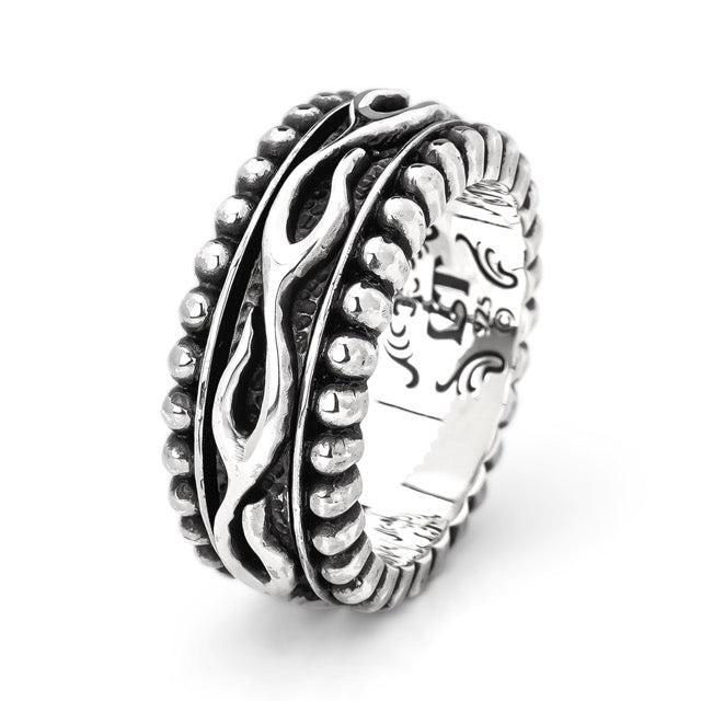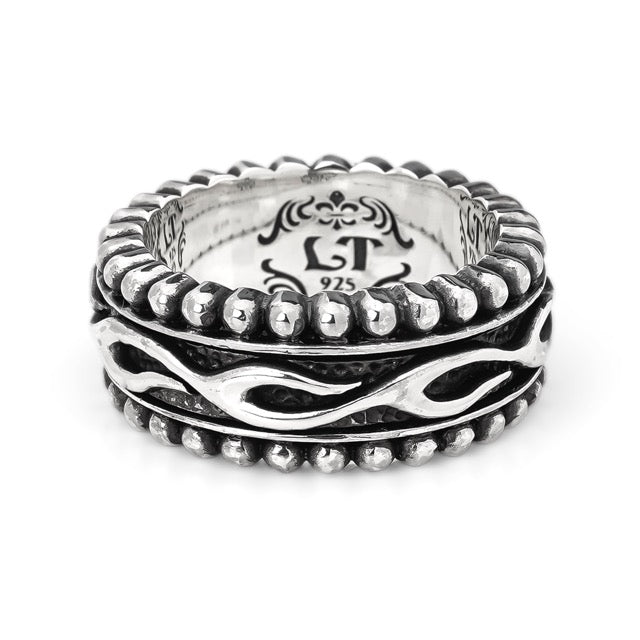 Leathers and Treasures:Narrow Beaded Edge Ring w/Flame Belt
