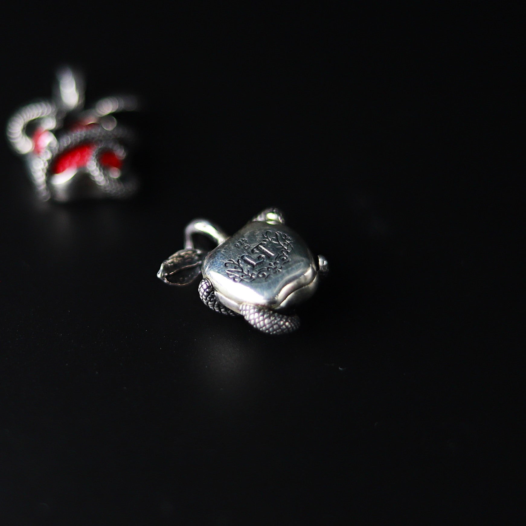 ■ 聖書にも登場する知恵の実を題材に、イブを誘惑するように絡みつく蛇の姿を組み合わせたペンダント。艶のあるスティングレイが組み込まれた、ファッションのアクセントに最適なボリューム感のアイテムです。