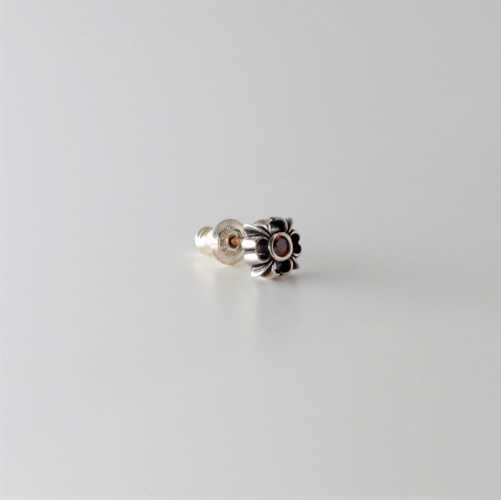 ■ 中央にレッドダイヤモンドを一石セットした、スタッドタイプのクロスピアス。