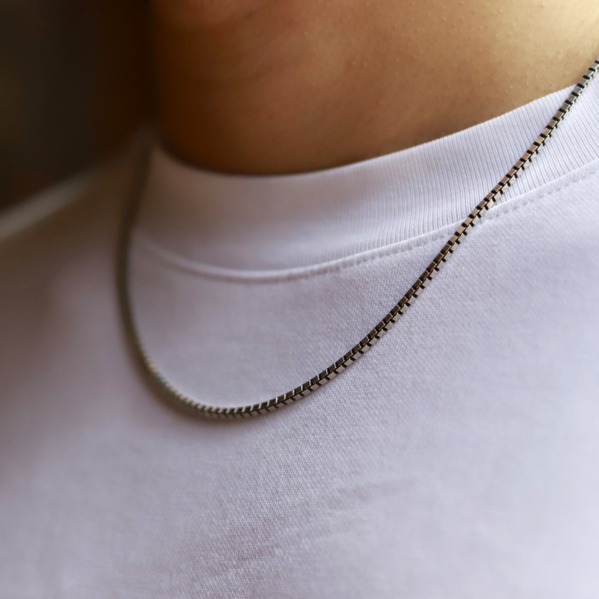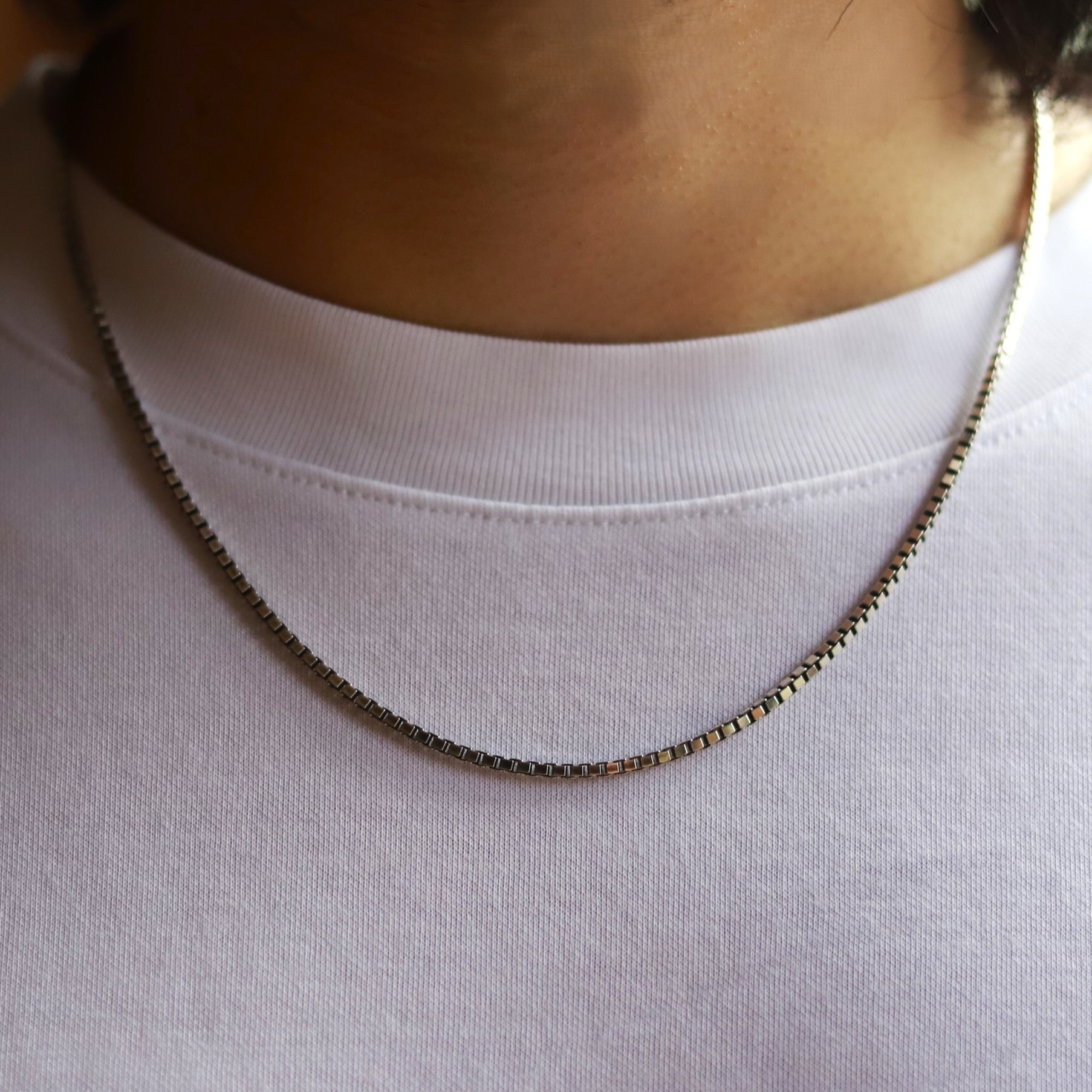 ボックス型の金具を連ねたベネチアンチェーンです。