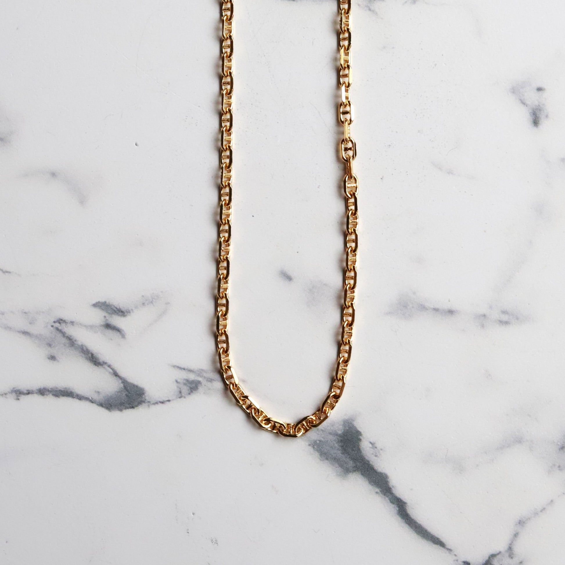 F.H. シルバーネックレス(アンカーチェーン ゴールドコーティング 3mm):#N018GP-50cm