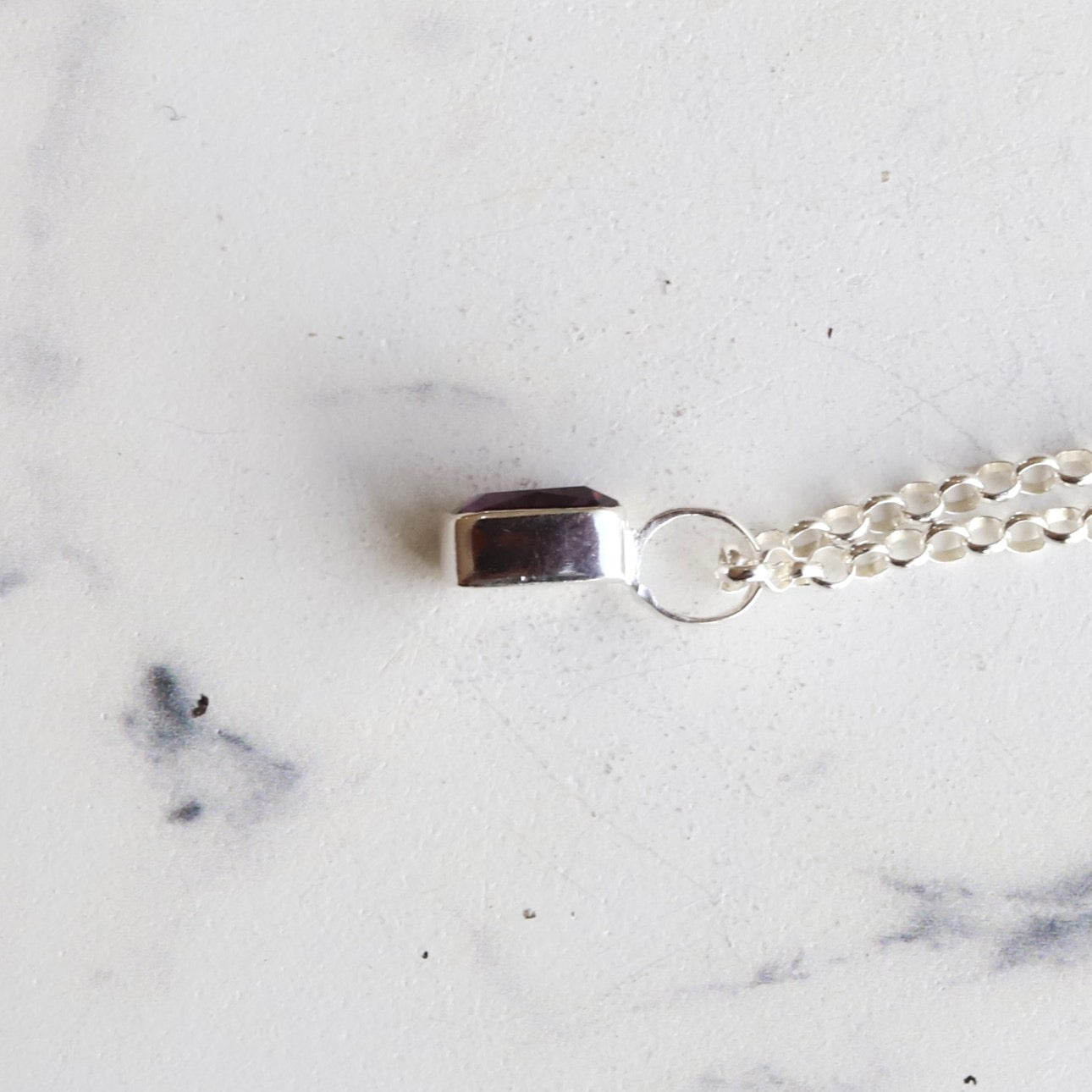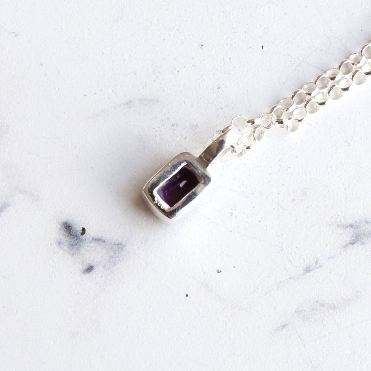 ■ シルバー枠にアメジスト(天然石)があしらわれたペンダント。