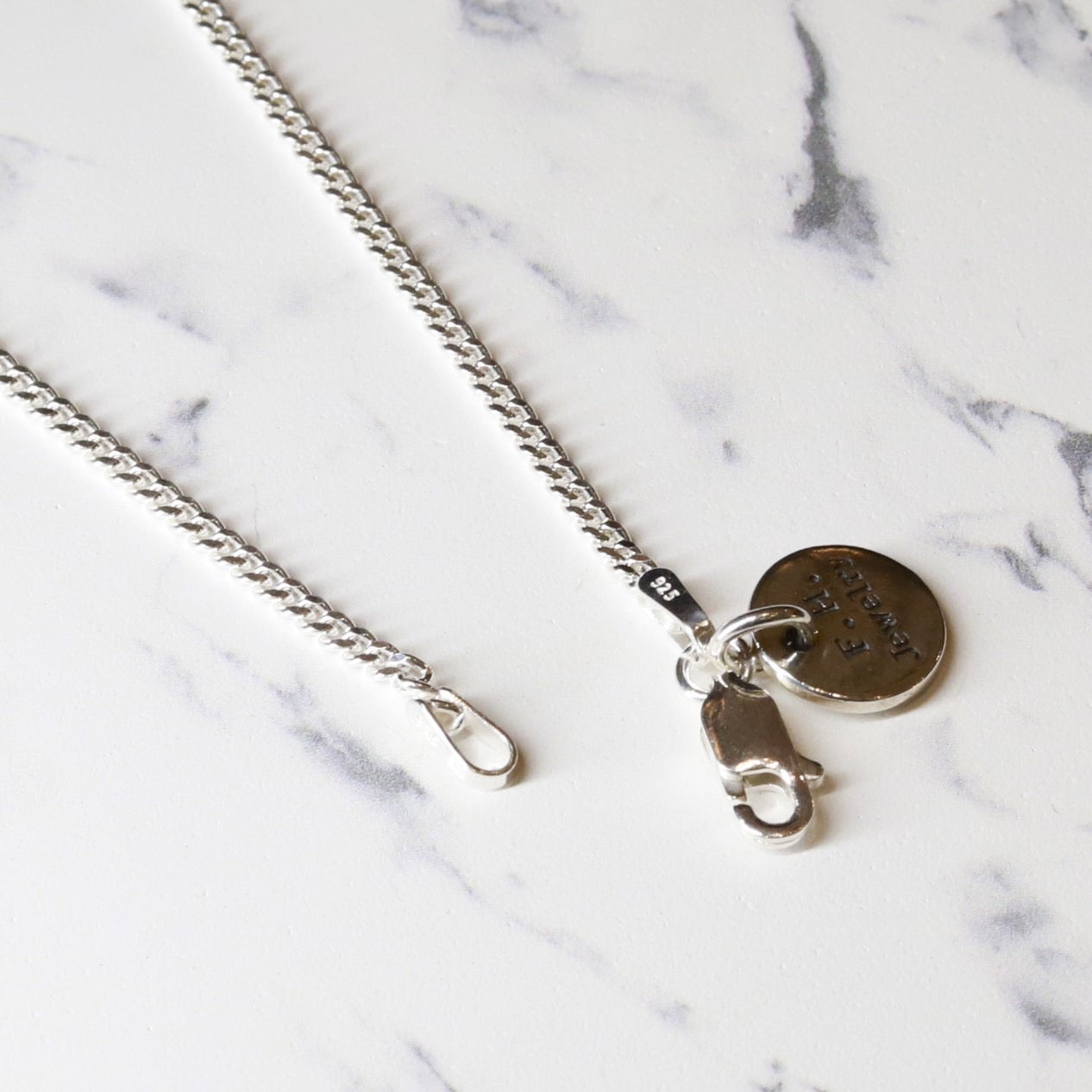 ■ 素材はシルバー925二面カット喜平の細めのチェーン。丁寧に磨かれたチェーンは高級感溢れ、シンプルながら洗練されたデザインです。