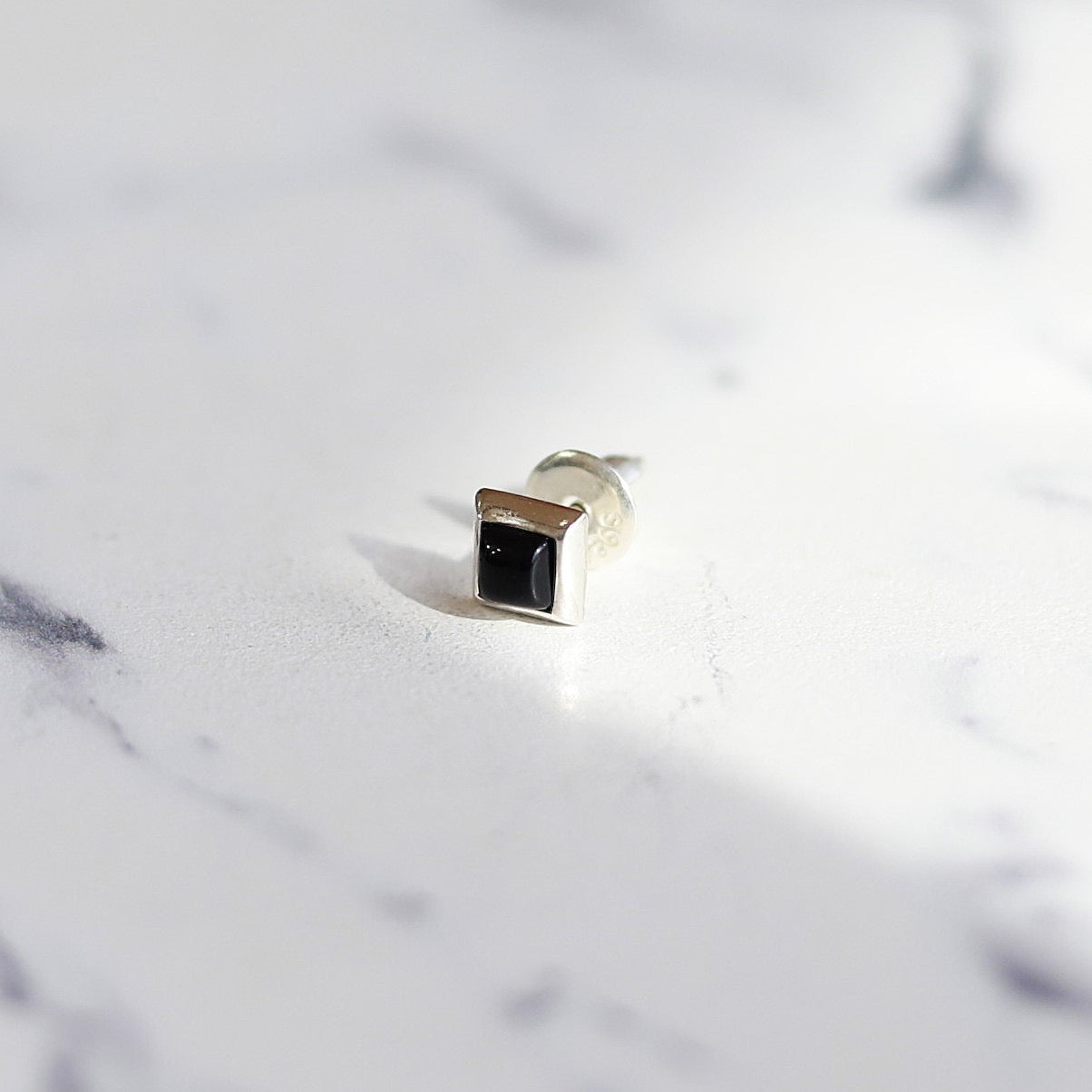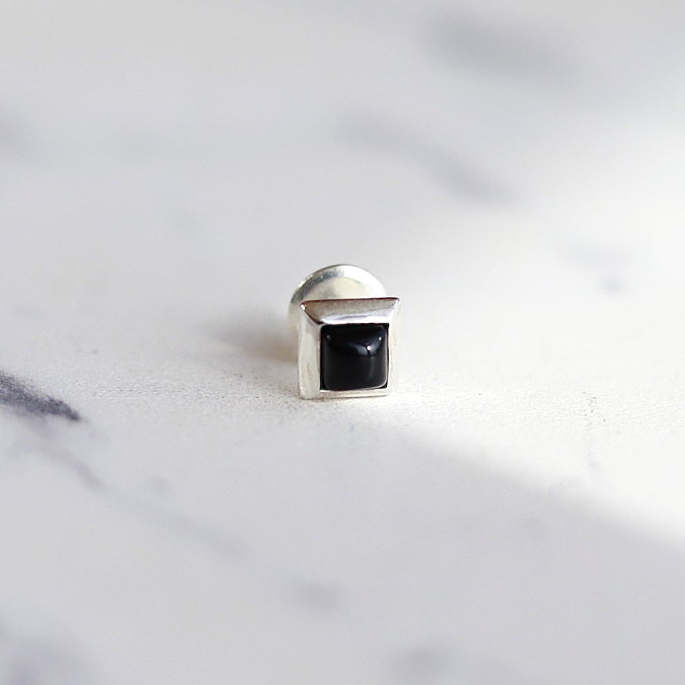 【日常に馴染むオニキスピアス】F.H. シルバーピアス(スクエアオニキス):#E069ONX