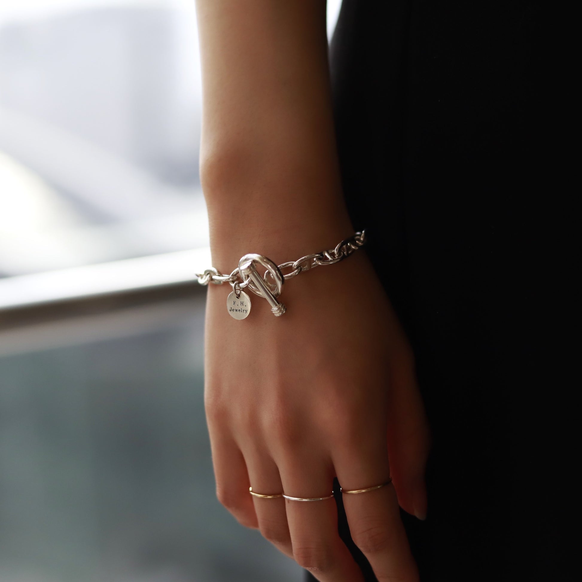 【手首周り細めの方に】F.H. シルバーブレスレット (アンカーチェーン 5mm):#B029-17cm