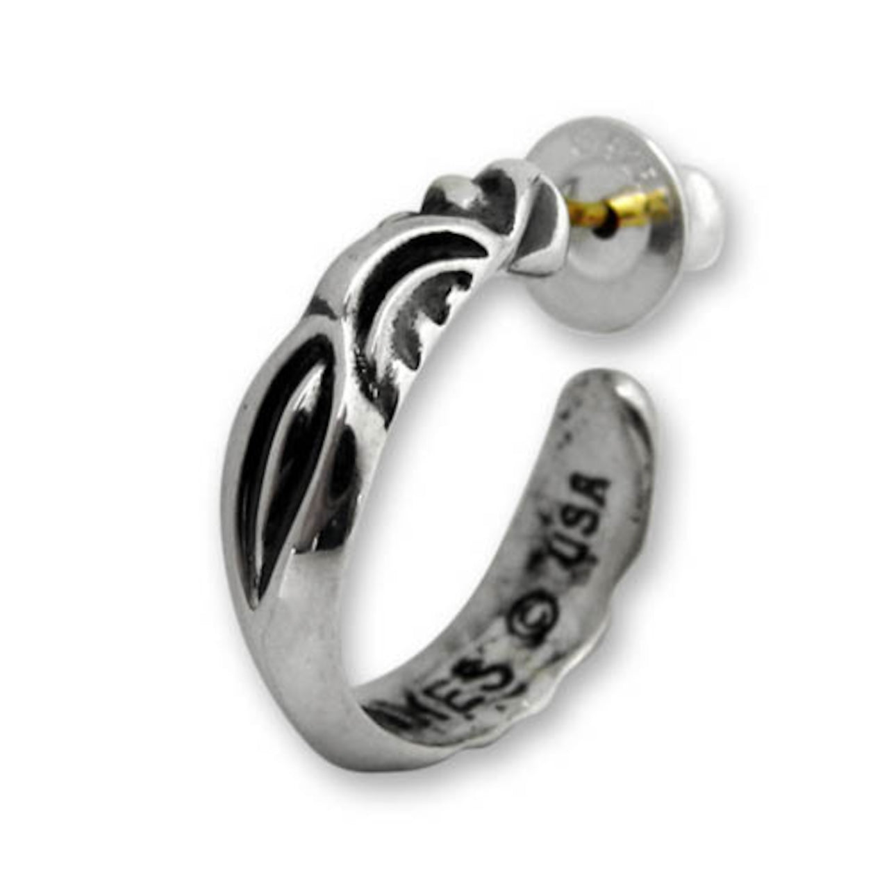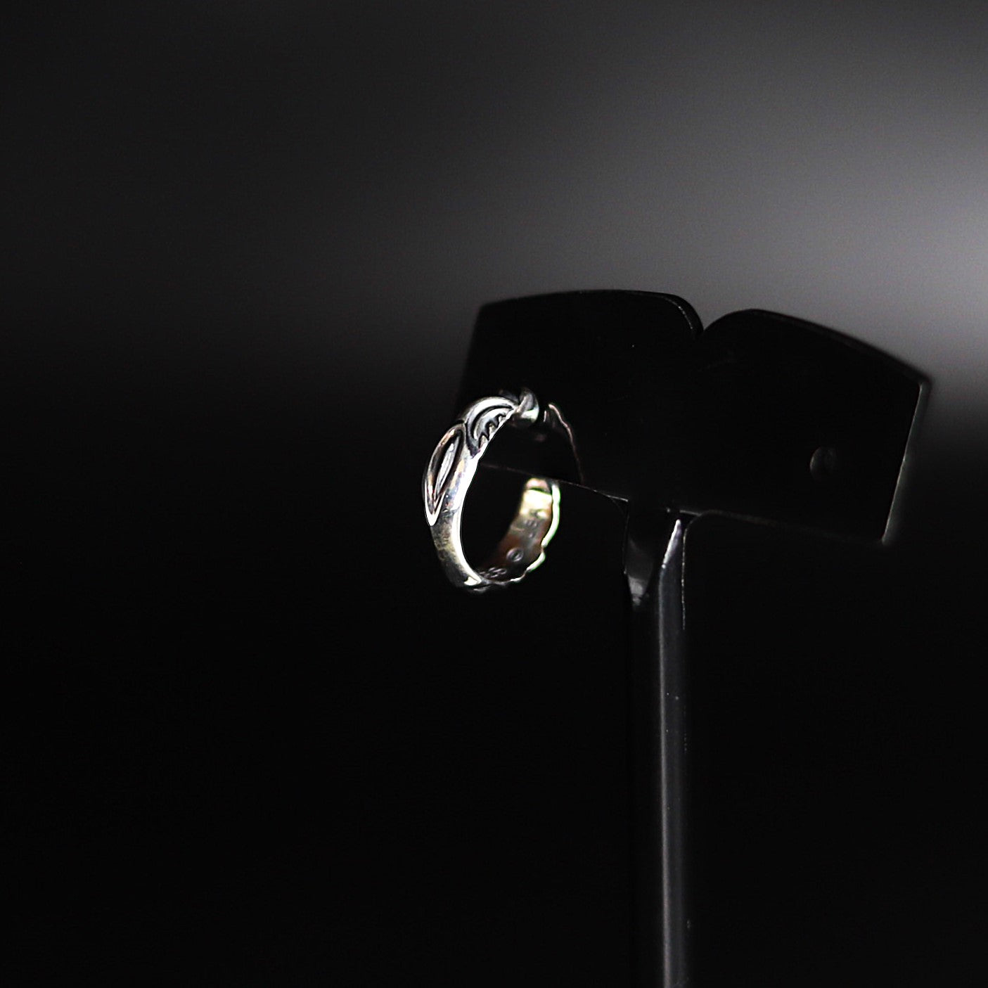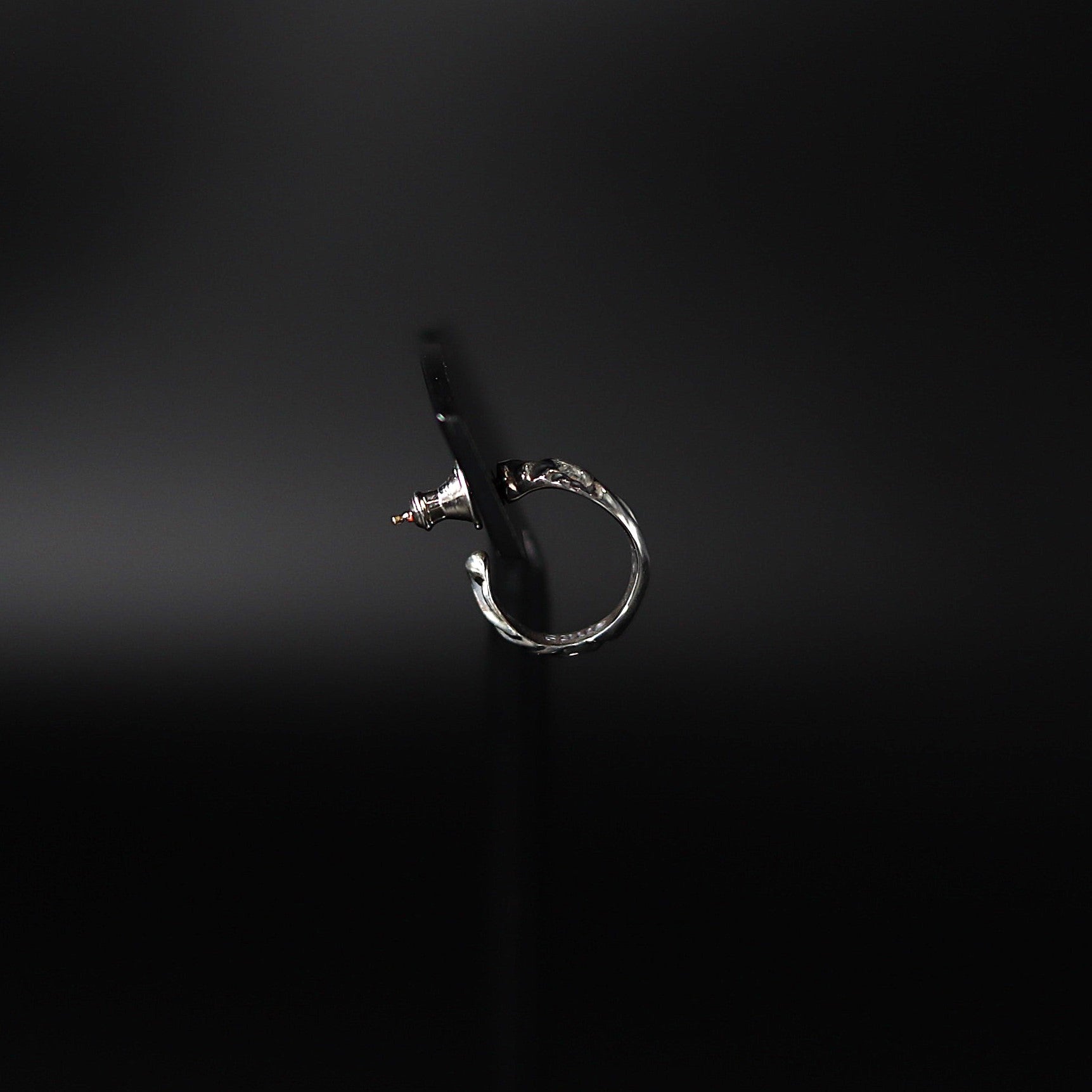 ■小さなフープの中にも深く掘り込まれた立体感を出すレイブン。存在感があるデザインワークは華麗といえるピアス。男性女性ともに人気があるアイテム。